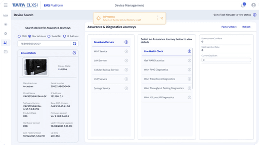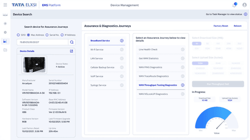 • Device Search & Diagnostics: Locate, troubleshoot, and reset CPEs remotely.
