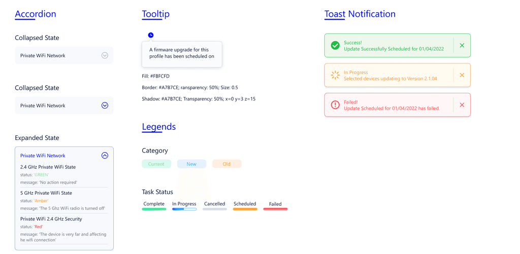 • UI Components: Reusable elements such as buttons, tables, cards, and data visualisations.