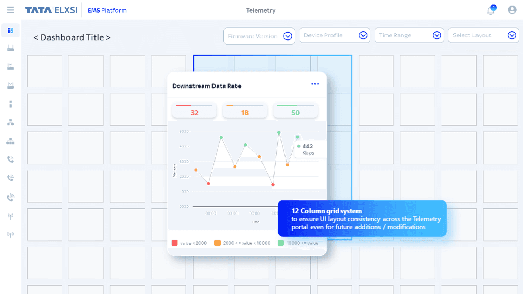 • Grid System: A structured 12-column layout for adaptable dashboards.